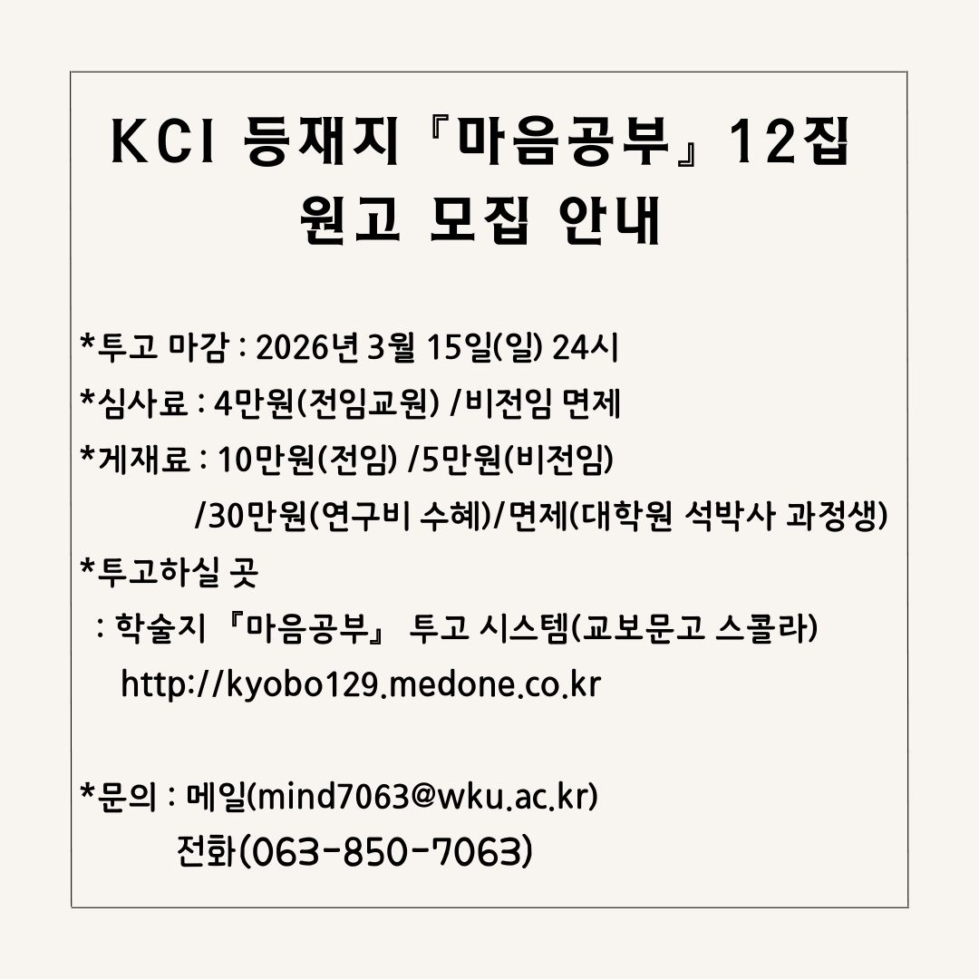 KCI 등재지 『마음공부』 12집 원고 모집 안내
