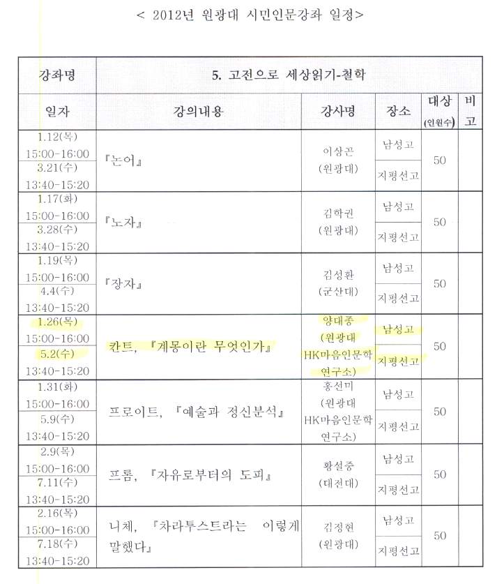 2012년 시민인문강좌 고등학생 인문특강(남성고)