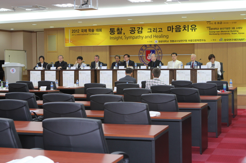 ▶ 내용: 제2회 마음인문학연구소 국제학술대회가 <통찰, 공감 그리고 마음치유>라는 주제로 원광대학교 숭산기념관에서 2012년 6월 8일(토)에 개최되었다. 이번 국제학술대회는 기조강연인 루이스 로이 교수(캐나다 도미니칸대)의 ‘로너건의 치유로서의 회심’를 비롯하여 웨이 차–화(대만), 루이스 메디(폴란드), 데이비르 플라이쉐이커(미국) 등 국외 전문가들이 참여하여 마음과 치유에 대하여 철학적, 종교적 차원의 접근이 이루어졌으며, 특히 국내에 많이 알려지지 않았던 버나드 로너건의 사상에 대하여 접할 수 있는 소중한 자리가 되었다. 본 연구소에서는 백현기 HK교수의 ‘음악을 활용한 마음치유 프로그램 개발에 관한 연구’, 윤지원 HK연구교수의 ‘선진도가의 마음’, 홍선미 HK연구교수의 ‘마음치유의 장–여백: 비움과 채움’이란 주제의 연구 발표를 진행하였다. 이날 학술대회는 통찰과 공감이라는 큰 틀에서 마음이해와 마음치유에 대한 폭넓은 논의를 진행할 수 있는 계기가 되었다.