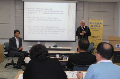 ▶내용: 2012년 9월 13일(목), 원광대학교 교학대학 1층 세미나실에서 마음인문학연구소 제19회 콜로키움이 열렸다. 이날 발표자인 클라우스 위츠 교수(일리노이 대학 명예 교수)는 <초상화법을 이용한 인물 사례 탐구>라는 강연을 통해 심층면담과 초상화적 기법을 적용한 인간에 대한 심층적 이해의 가능성을 제시하였다. 더불어 그간 이러한 방법론을 통해 진행해 온 위츠 교수의 연구과정을 전해 듣기도 하였다.