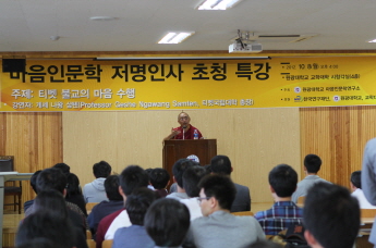 ▶ 내용: 2012년 10월 8일, 원광대학교 교학대학 시청각실에서 “티벳 불교의 마음 수행”이라는 주제로 열렸다. 이번 특강의 강연자는 티벳학 국립 대학, 게세 나왕 삼텐 총장으로 고대 인도 불경에서 티벳어로 번역된 불경 중 현재 사라진 산스크리트 경전을 재번역하는 일에 헌신하였으며 이 공로를 인정받아 2009년에는 인도대통령이 수여한 연식장을 수여받았다.