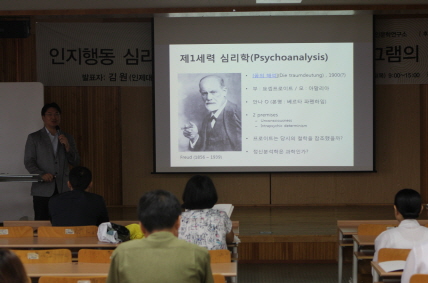 ▶ 내용: 마음인문학연구소에는 2014년 09월 04일 (목), 원광대학교 교학관(4층) 시청각실에서 “인지행동심리치료의 이론을 활용한 프로그램의 개발 및 적용”이라는 주제로 김원 교수(인제대학교 서울백병원 정신건강의학과)를 초청하여 인지행동심리치료의 역사적 변천과 임상 실제에 대해 강의와 토론을 진행하였다.