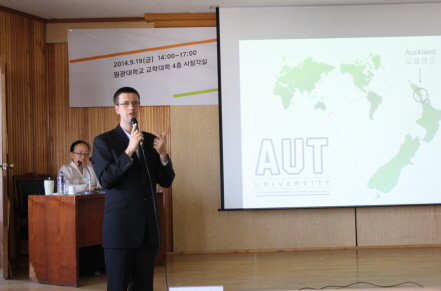 ▶ 내용: 2014년 9월 19일 (금), 원광대학교 교학관(4층) 시청각실에서 “자폐아 치유를 위한 앱(APP) 프로그램 개발 연구”를 진행함. 뉴질랜드 오클랜드 기술대학(AUT) 심리학과 교수이자 원광대학교 마음인문학연구소 일반연구원으로 협동연구를 진행중인 Cristian U. Krägeloh교수를 초청하여 “자폐아 치유를 위한 앱 프로그램 개발 연구”에 대한 연구 성과 및 시사점에 대해 강연. 마인드풀니스(mindfulness)를 치유에 활용한 프로그램 개발 및 적용 사례에 대해 정보교류의 장을 마련. 이를 통해 향후 마음치유와 마음도야를 위한 프로그램 개발에 시사점을 제공.