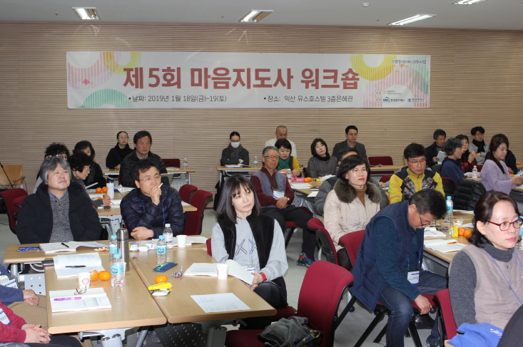 ▶내용: 제5회 마음지도사 워크숍’을 1박 2일의 일정(2019. 1.18-19.)으로 익산시 유스호스텔 3층 은혜관에서 실시하였다. HK연구진 및 마음학교 운영진, 마음지도사,선명상 치유학과 학생 등이 한 자리에 모여서 그동안 진행되었던 마음지도 프로그램(마음지도사 역량강화 교육, 케어마인드 프로그램에 대한 심화 교육, 케어마인드 인성교육 프로그램의 현장적용 사례 공유)을 공유하고 명상을 기반으로 하는 마음공부와 마음챙김, 요가 지도법등을 직접 체험하는 기회를 가졌다.