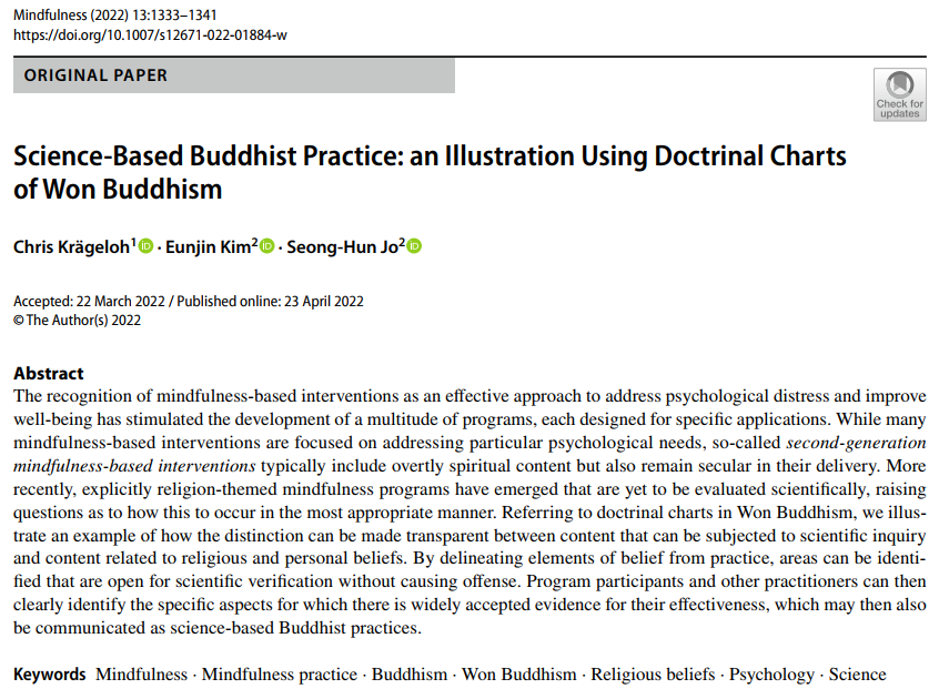 논문제목 Science-Based Buddhist Practice: an Illustration Using Doctrinal Charts of Won Buddhism