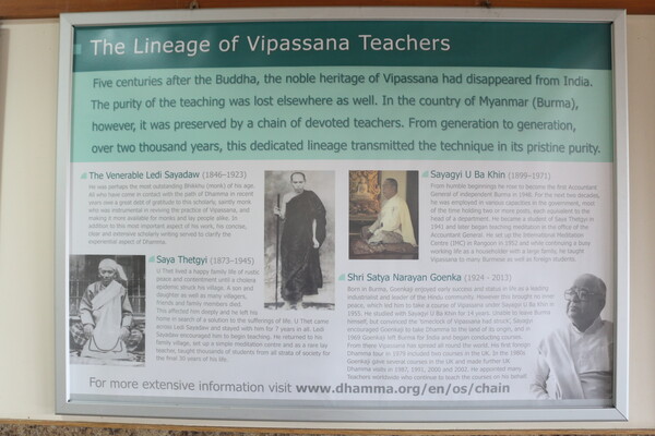 고엔카 전통의 명상센터 홈페이지에 접속하면 ‘사야지 우 바 킨 스승의 전통에 따라 고엔카 선생님이 가르치는 위빠사나 명상(Vipassana Meditation as taught by S.N. Goenka in the tradition of Sayagyi U Ba Khin)’이라는 문구가 보입니다. 스승의 전통을 그대로 잇고 있다는 선언입니다.
