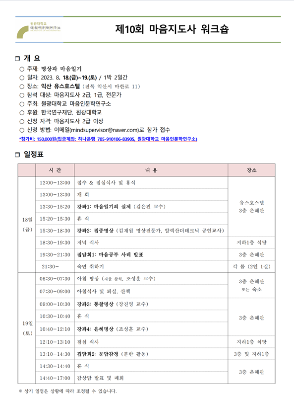 첨부파일: 제10회 마음지도사 워크숍 개최안내 및 참가신청서