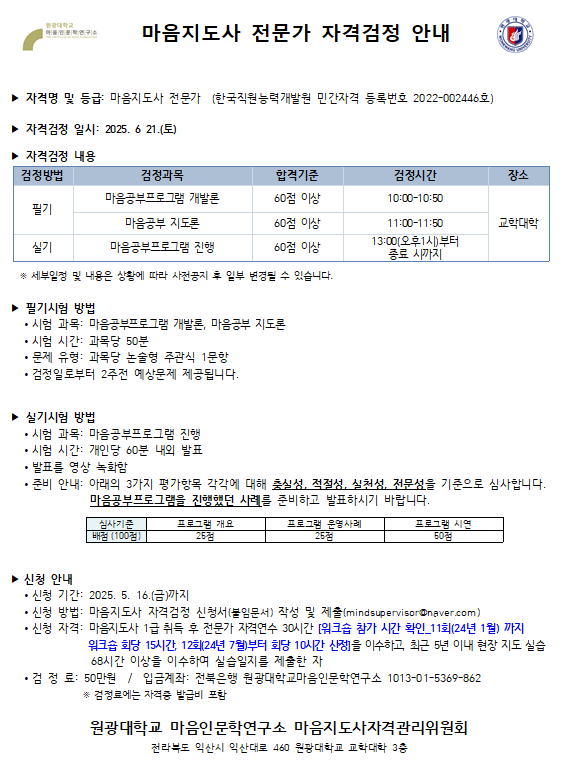 2025년 상반기 마음지도사 전문가 자격검정 안내