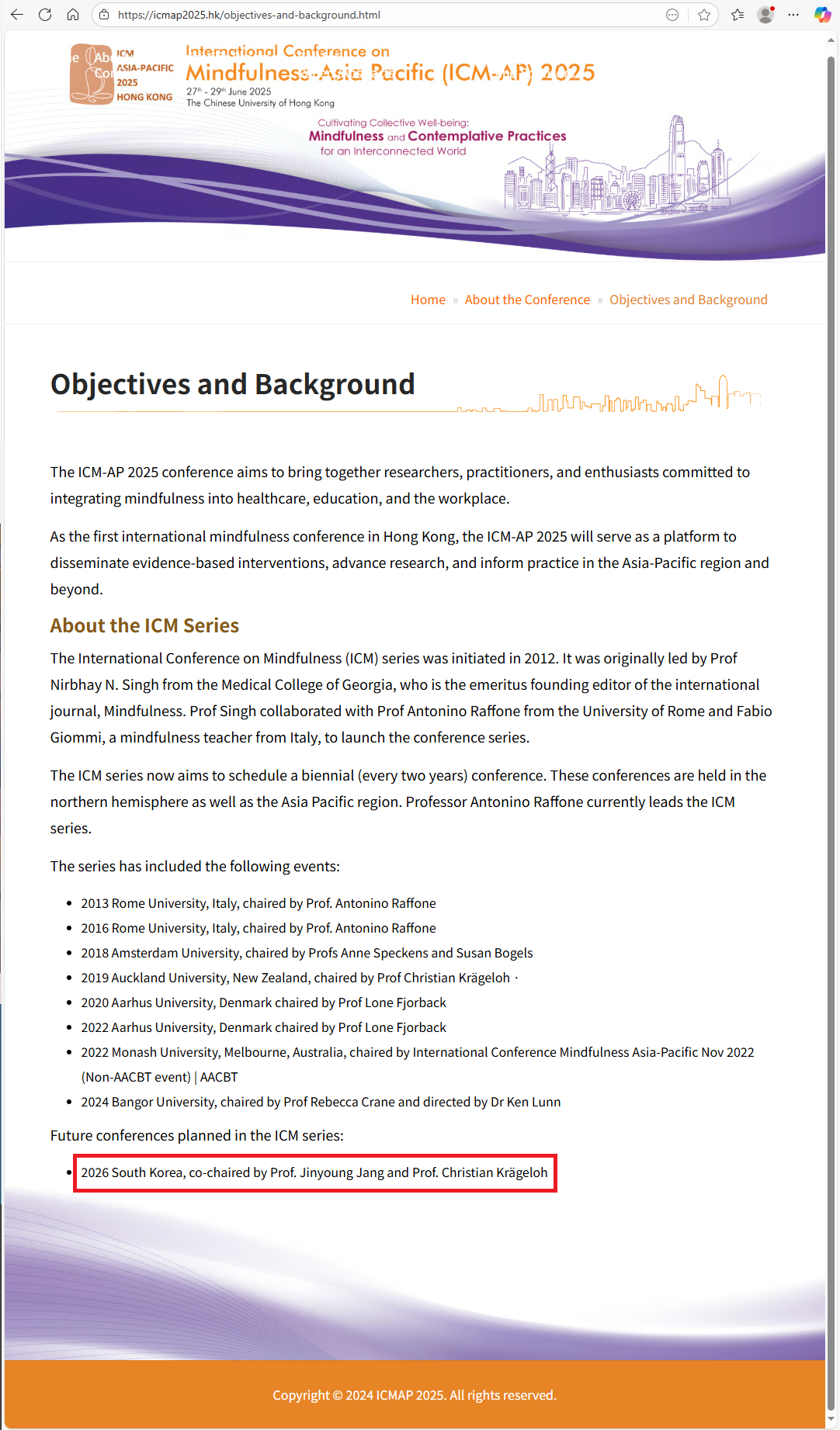 ▶ 제목: International Conference on Mindfulness-Asia Pacific South Korea 2026