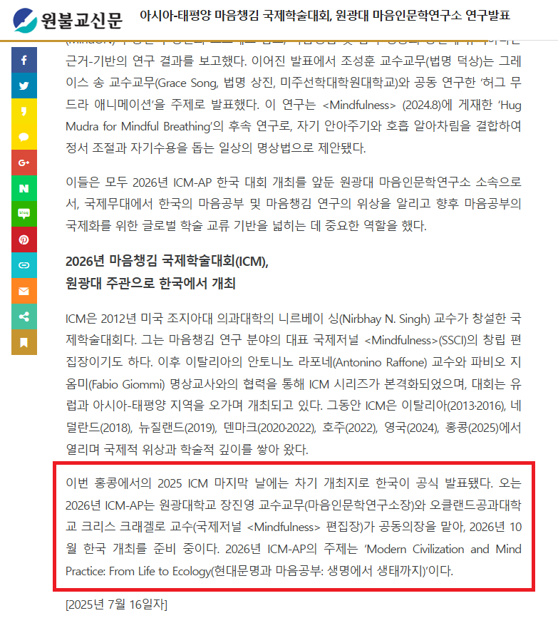 ▶ 관련기사(링크): International Conference on Mindfulness-Asia Pacific