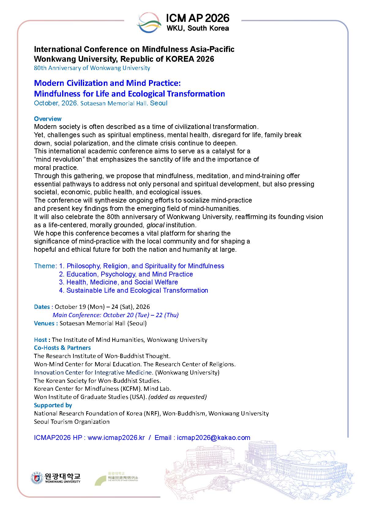 ▶ 제목: International Conference on Mindfulness-Asia Pacific South Korea 2026