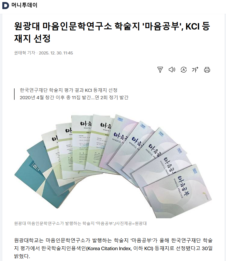 이번 KCI 등재지 선정은 ‘마음공부’가 학술 플랫폼으로서의 위상을 한층 공고히 하는 계기가 됐다.